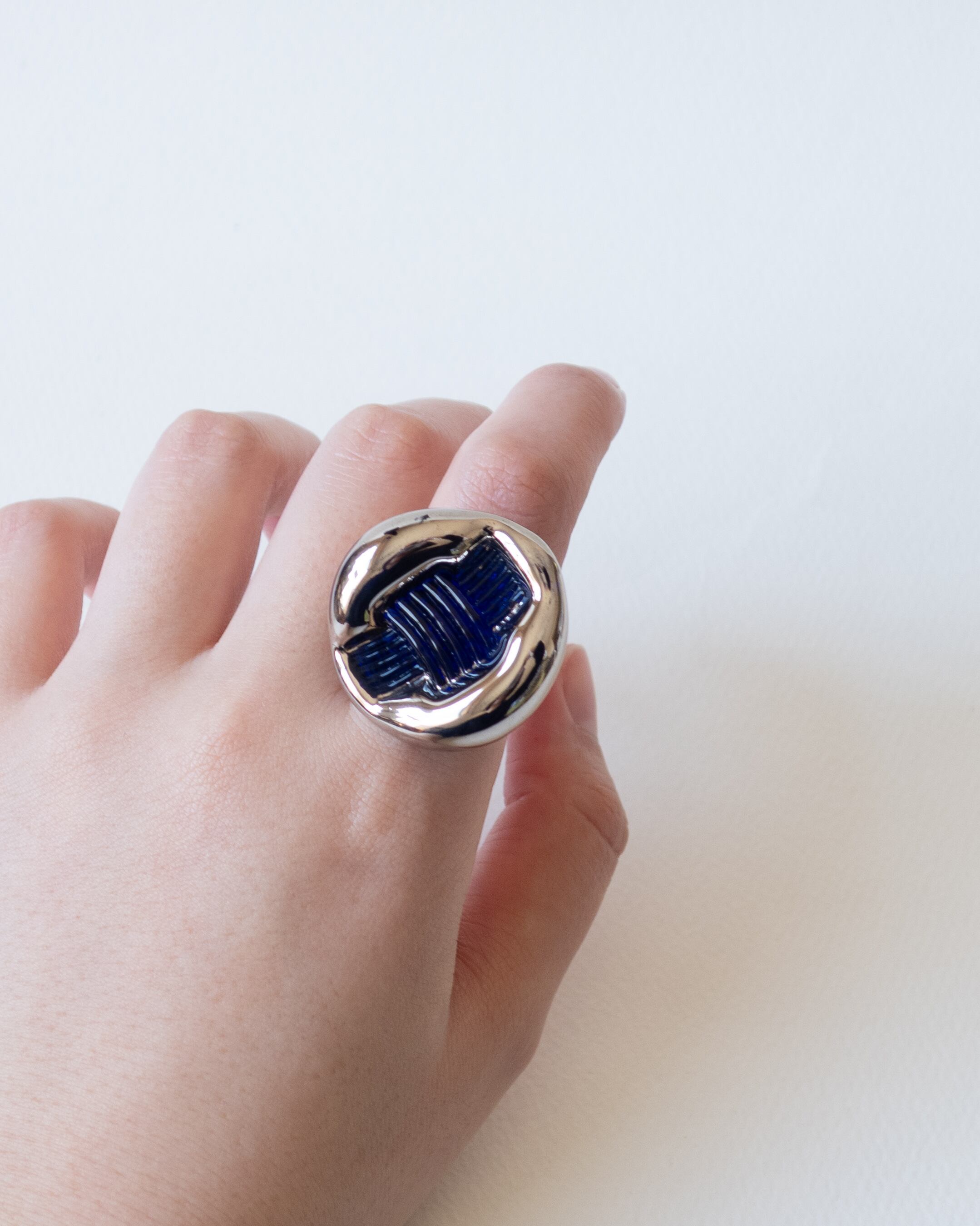 リボンを結んだようなブルーのセンターモチーフ、