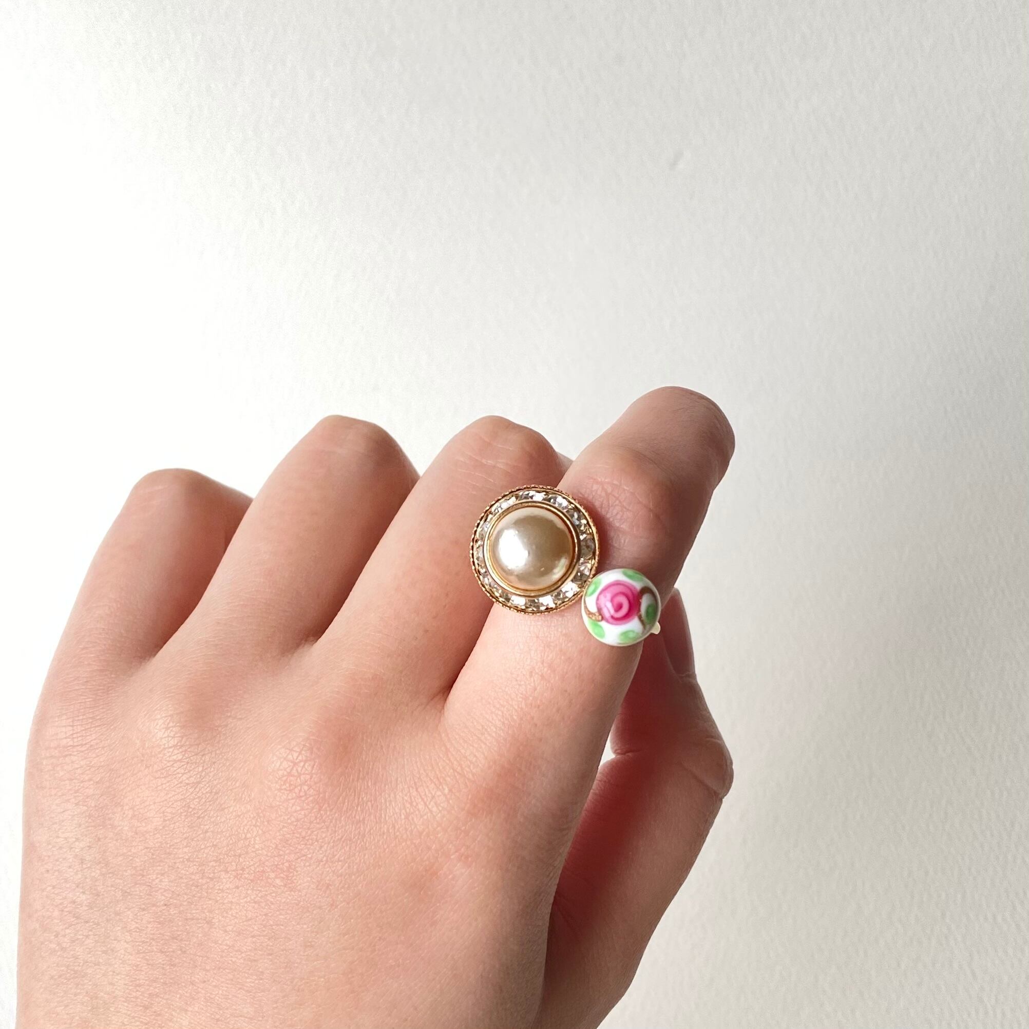 つやんとした薔薇モチーフのガラスボタンと