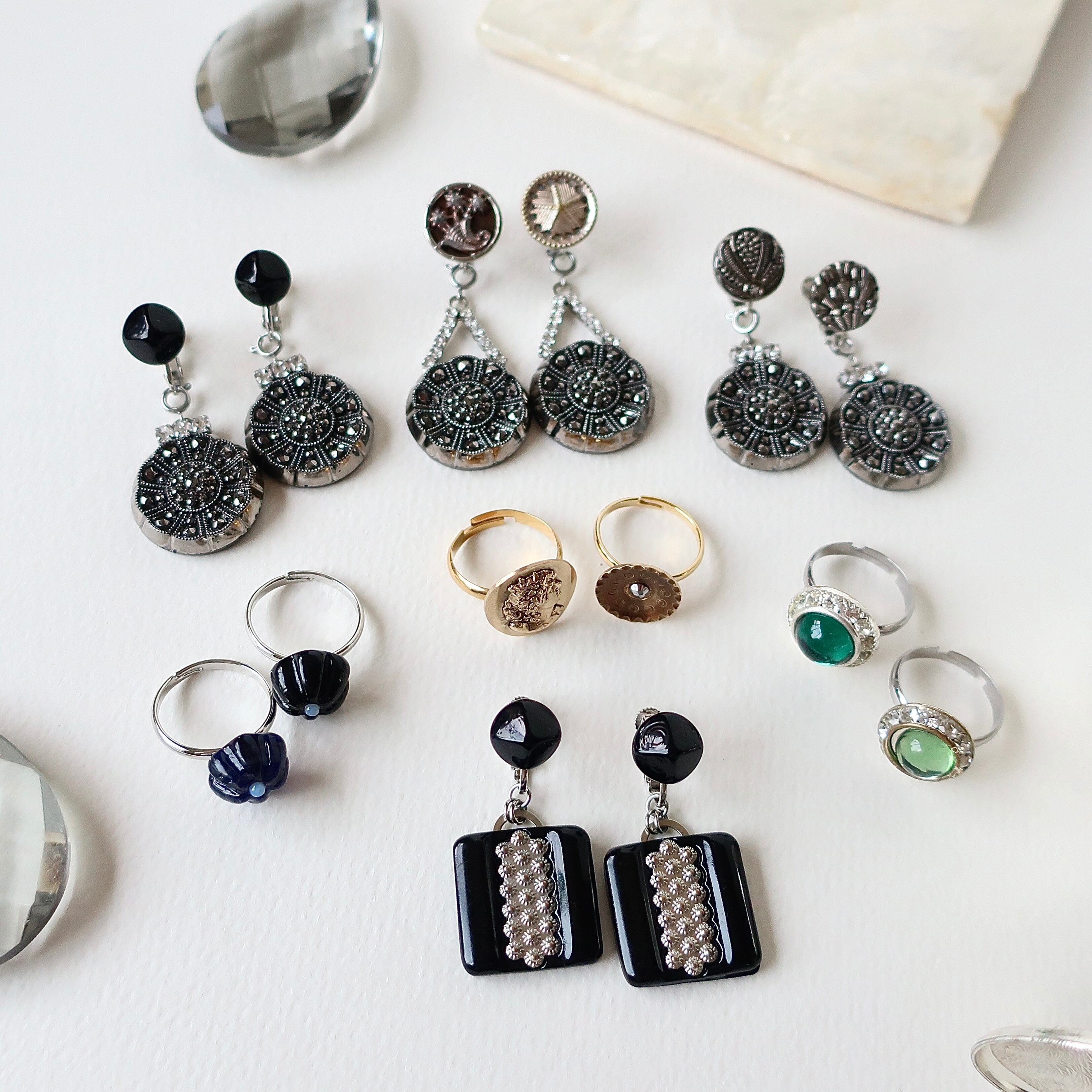 トップに使用した黒いガラスボタンは