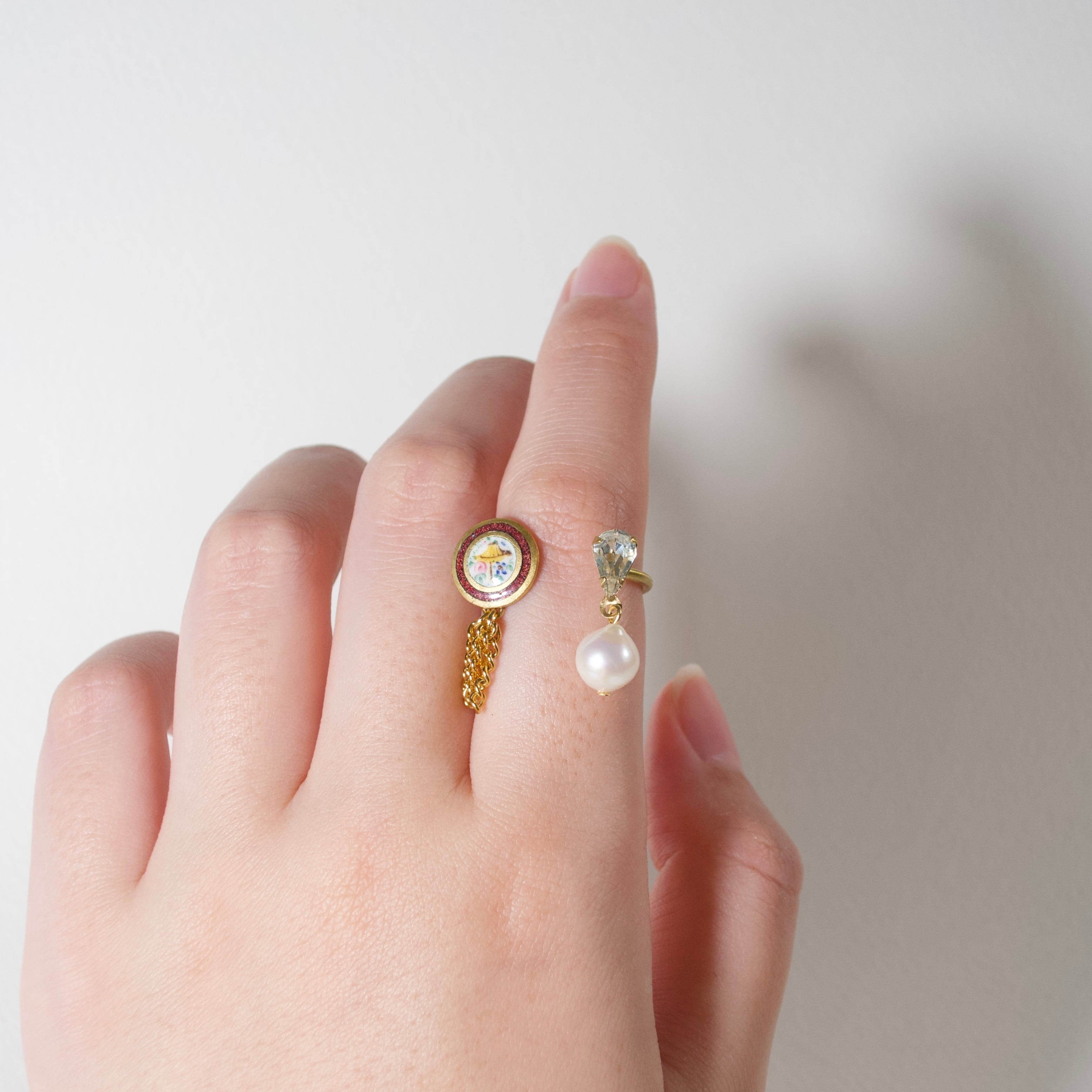 リングはすべて「モモ・ホウセキ商会」の会員証、